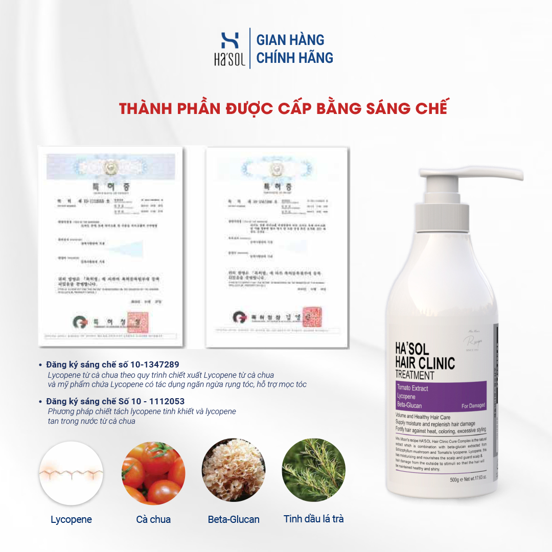Sản phẩm Kem Ủ Tóc Ha’sol Hair Clinic Treatment giúp phục hồi tóc hư tổn, làm mềm mượt tóc, được chứng nhận bởi Bộ An toàn Thực phẩm và Dược phẩm Hàn Quốc.